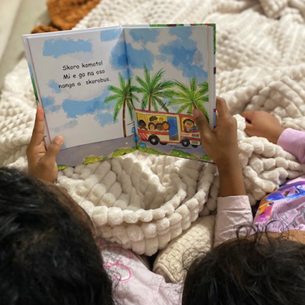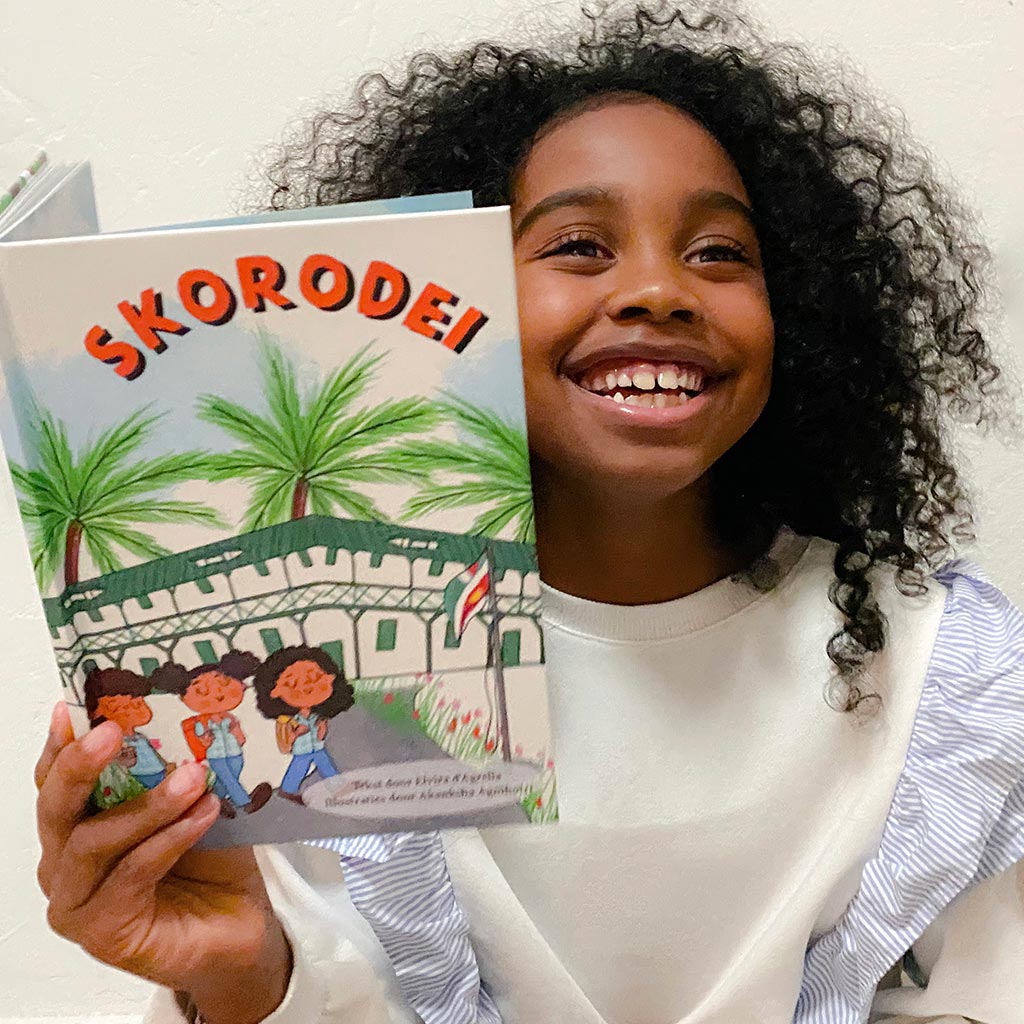 Ga mee op een schooldag in het verhaal van ”Skorodei’. Van het moment dat de wekker gaat tot het slapengaan in de avond. Dit verhaal laat kinderen beleven hoe een typische Surinaamse schooldag eruit ziet met herkenbare en dagelijkse rituelen. Het boek is een aanrader voor een laagdrempelige kennismaking met de Surinaamse taal. Leer je kinderen (of jezelf) Sranantongo lezen en schrijven. De verhaallijn is interessant