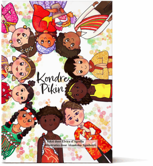Voorleesboek in het Sranantongo met vertalingen naar het Nederlands en Engels.